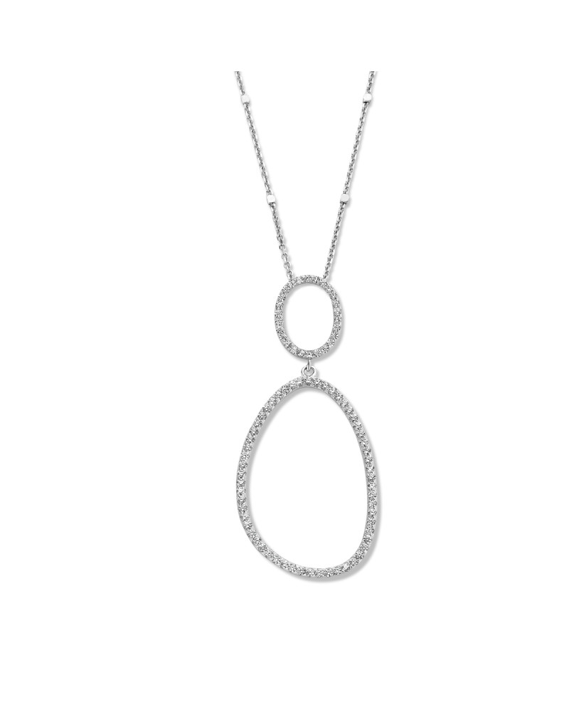 Collier argent avec 2 cercles pendants sertis de zirconium.