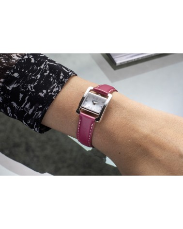 Vème Avenue se réinvente en s’inspirant des tendances du moments. Couleurs et sophistication, cette Vème Avenue est munie d’un boîtier en acier. Habillée d’un cadran en nacre véritable, cette montre se démarque par sa couronne décalée à midi. Montée sur un bracelet en cuir rose fushia, cette montre Michel Herbelin est l’allié du quotidien des femmes modernes.